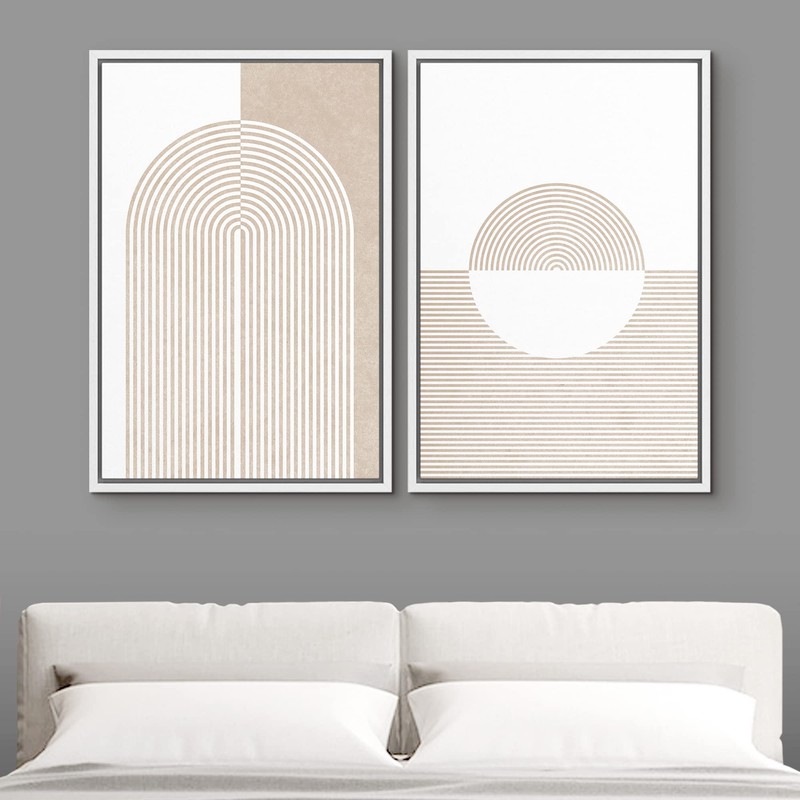 MUDECOR Framed Canvas Print Wall Art Set Pastel Tan Geometric Circle Spirals Abstract Shapes Illustrations Modern Art Decorative Contemporary for Living Room, Bedroom, Office - 16"x24"x2 White