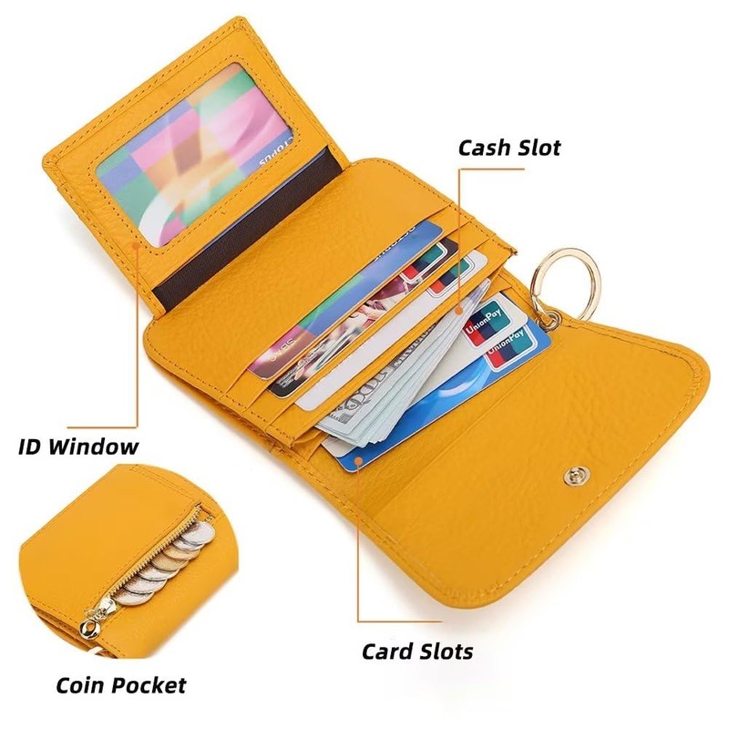 - Everyday Card Wallet: Compact and lightweight, fully consider your travel and everyday needs, 6 card slots, 1 ID window, 1 coin zipper pocket, 1 cash slot, 1 keychain, practical structure, keep your items in order and easy to use.