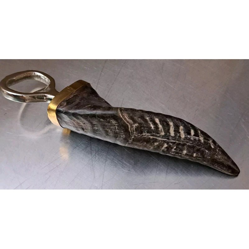 Introducing a unique and stylish bottle opener from MudPie, perfect for all occasions. Crafted from high-quality animal horn, stainless steel, and brass, this opener is both durable and stylish. Its stunning shades of brown make each one different and special in its own way.