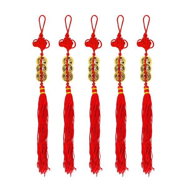 - Chinese fortune coins lucky charm with an endless knot feng shui tassel and 3 I Ching coins; Length: 12 inches; Eight emperor coin size: 1 inch; Pack of 5 sets