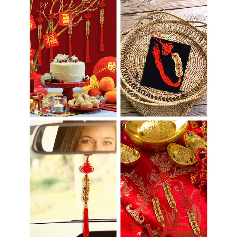 - Chinese lucky coin hanging with Chinese knots made from brass imitation ancient Chinese coins and red string; Handmade Feng Shui decor