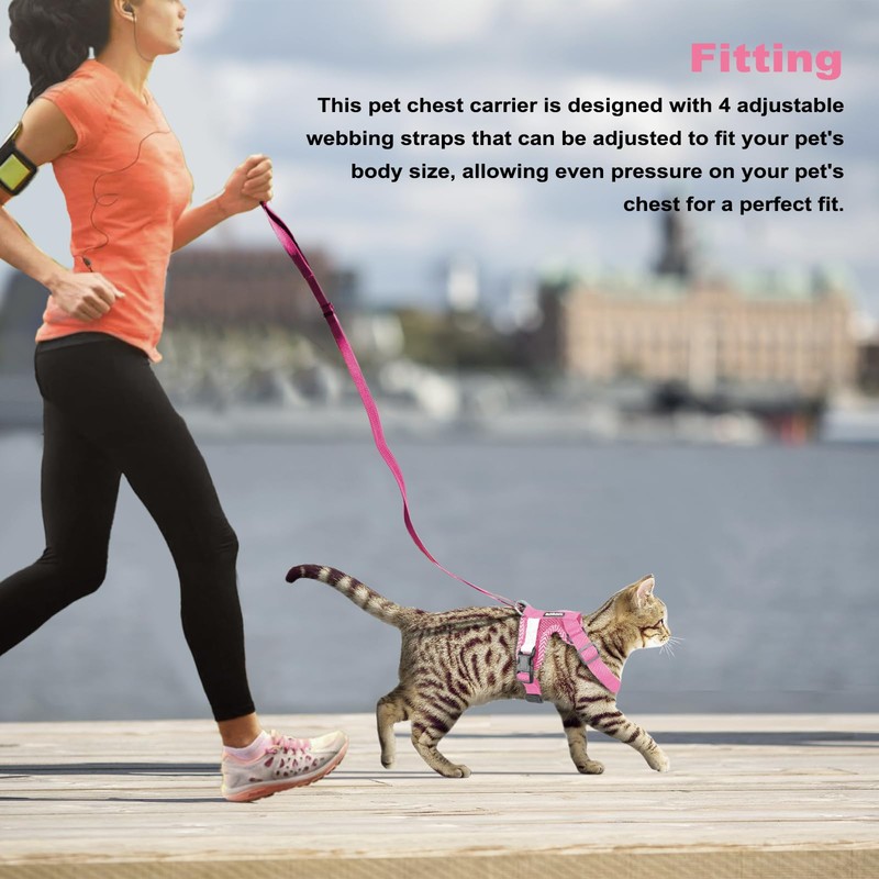 Muecleao Cat Harness and Lead Set, Adjustable Kitten Harness and Lead Set, Cat Harness with Reflective Strips, Escape Proof Cat Vest Harness with Leash Set for Cats Dogs Pets Walking (Pink, XL)