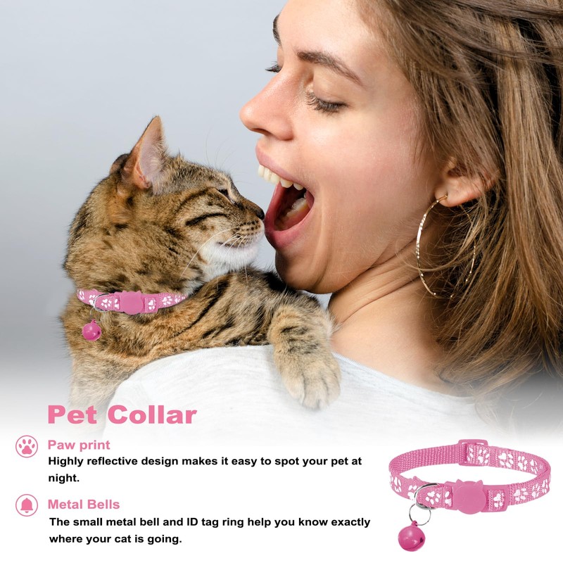 And, the cat harness has reflective tape sewn all around to improve visibility when travelling at night, ensuring your cat's safety. On the chest of the cat harness we have also added a metal hanging loop that can be used to hang information cards and a night light to prevent your pet from getting lost or escaping. It also comes with a collar that can make your cat look even more adorable.