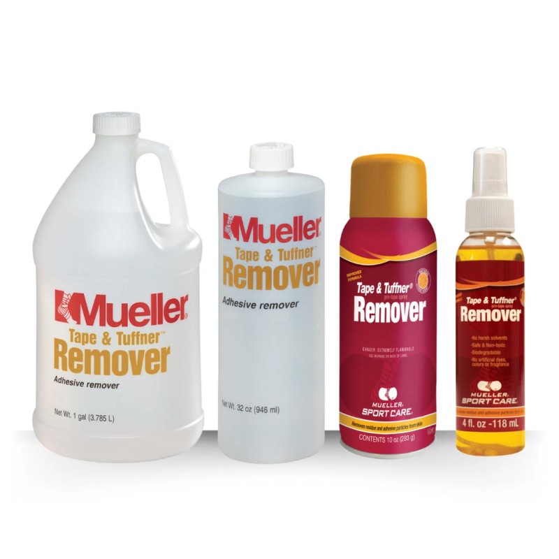Mueller Tape & Tuffner Remover removes pre-tape spray and adhesive particles from skin, countertops and taping benches. It's easy to use and works effectively to get rid of the stickiness that athletic tape tends to leave on the skin. To assist in the removal of adhesive and residues from the skin.