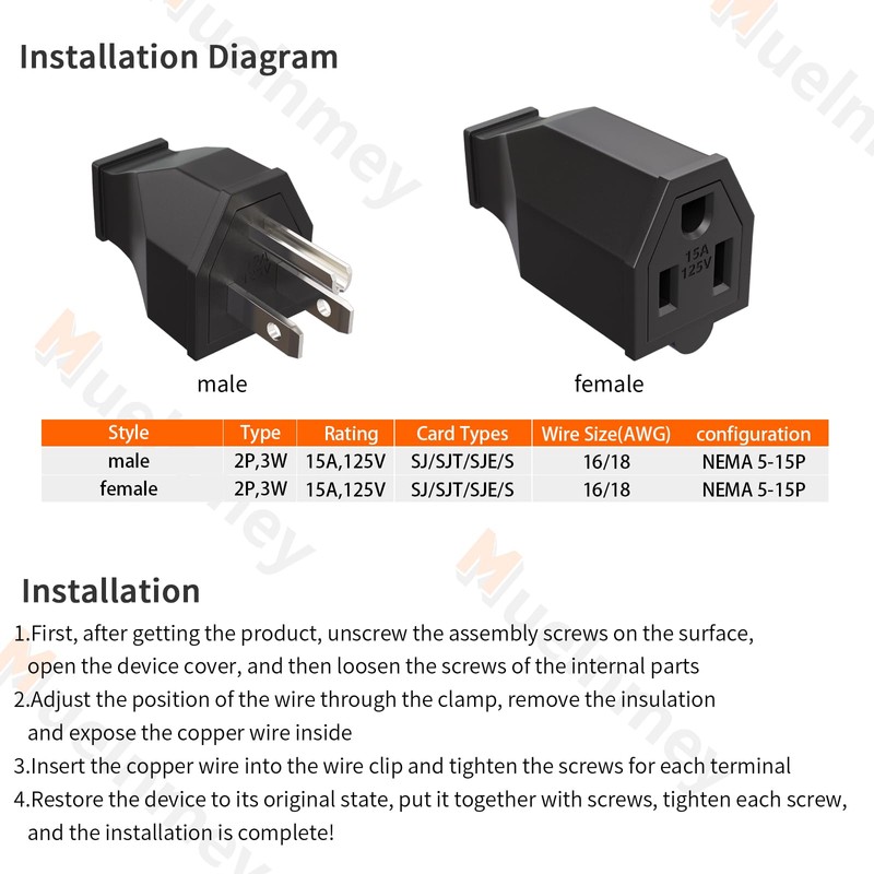 - 4.Meet the needs: Can accommodate different wire sizes (SJT16/18) Suitable for making new power cords or repairing the ends of extension cords for a variety of connection needs.