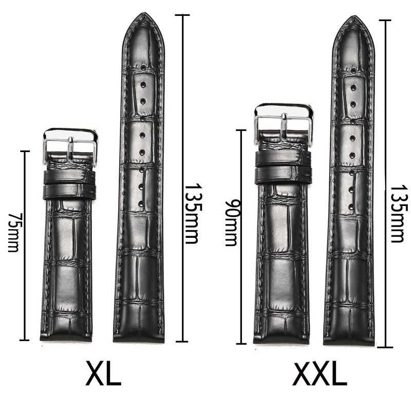 - The length of the long strap is 135 mm and the length of the short strap is 75 mm. With classic polished buckle and crocodile embossed