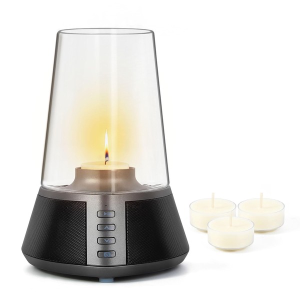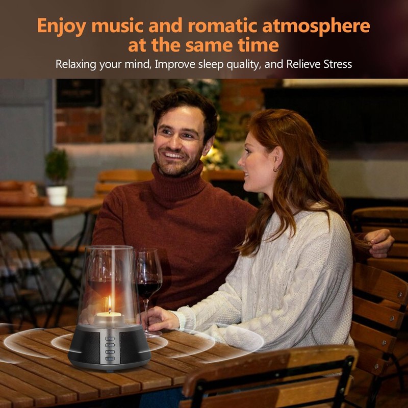 • Increase Comfortable Atmosphere with Tealight: This candlelight Bluetooth speaker features a tea light holder and a clear glass cover. You can light a regular candle or a small-sized scented candle and put it into the tealight holder when you enjoy the music, experiencing a comfortable and romantic atmosphere for reading, sleeping, yoga, massage, etc. It allows you to relax, improve sleep quality, and relieve Stress.
