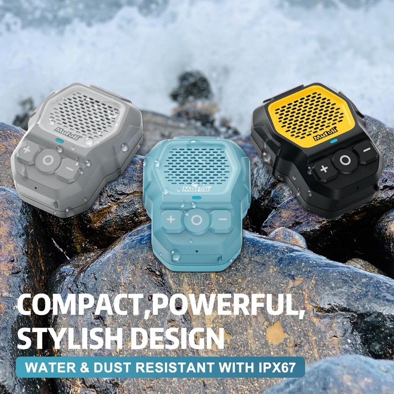 - [COMPACT & ULTRA-LIGHTWEIGHT] Forget about bulky speakers. This convenient pocket-sized bluetooth speaker with ultra light weight makes it perfect to clip on your workday uniform or gardening attire.