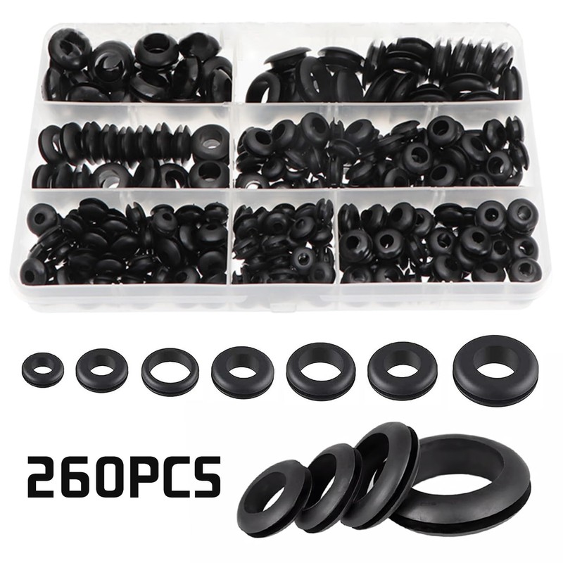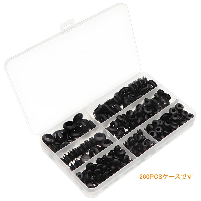 MUFUSHAN Cable Grommets, Rubber Bushing, Set of 260, Grommet Set, Gasket Grommets, Wire Protection, Double Sided Protection, Cable Protection, Rubber Bushing, Wire Grommets, Wire Rings, Storage Case