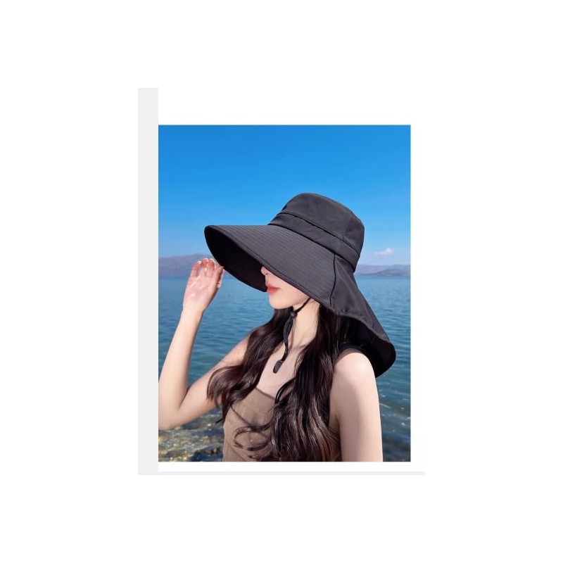 MUGEHUA Women's UV Cut Hat, Wide Brim, UV Protection, Lightweight, Breathable, Small Face Effect, Sun Protection, UV Protection, 100% Light Blocking, Includes Chin Strap, Cool, Large Size, Spring and