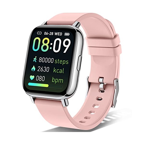 MuGo Smart Watch for Women, Fitness Watch 1.69" Touch Screen Smartwatch, Pedometer Watch with Heart Rate and Sleep Monitor, IP67 Waterproof Fit Watch, Activity Tracker Watch for iOS and Android Pink