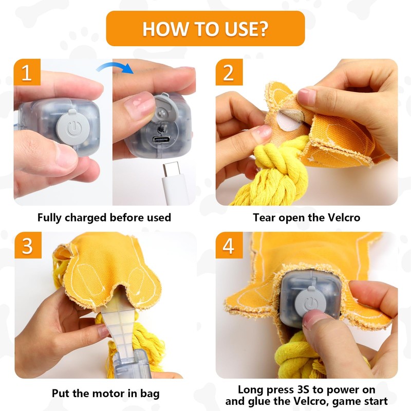 • Electronic dog toys combined with rope – Muhhiba Dog Toys, WIGGLES, VIBRATES, BARKS, Entice your dog to run, chase, play, and exercise. This interactive dog toy encourages fun stimulation for many breed dogs. Fun dog toys for small dogs, dog toys for medium dogs, not for aggressive chewers