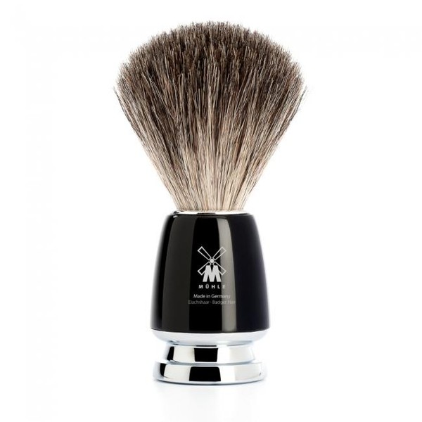 This shaving brush is made with pure badger hair, which provides a slightly stronger massage effect and is recognizable by its relatively dark coloring. The handle is made of high-grade resin, a high-quality synthetic material that is ideal for exclusive accessories and writing implements because it facilitates a broad spectrum of modern and classical designs in many attractive colors. The handle is also polished in several passes to give the surface its special gleam, lending the brush a pleasant feel and securing its beauty for many years to come. The brushhead is manufactured mechanically according to the same high standards which MÜHLE applies to all its products.