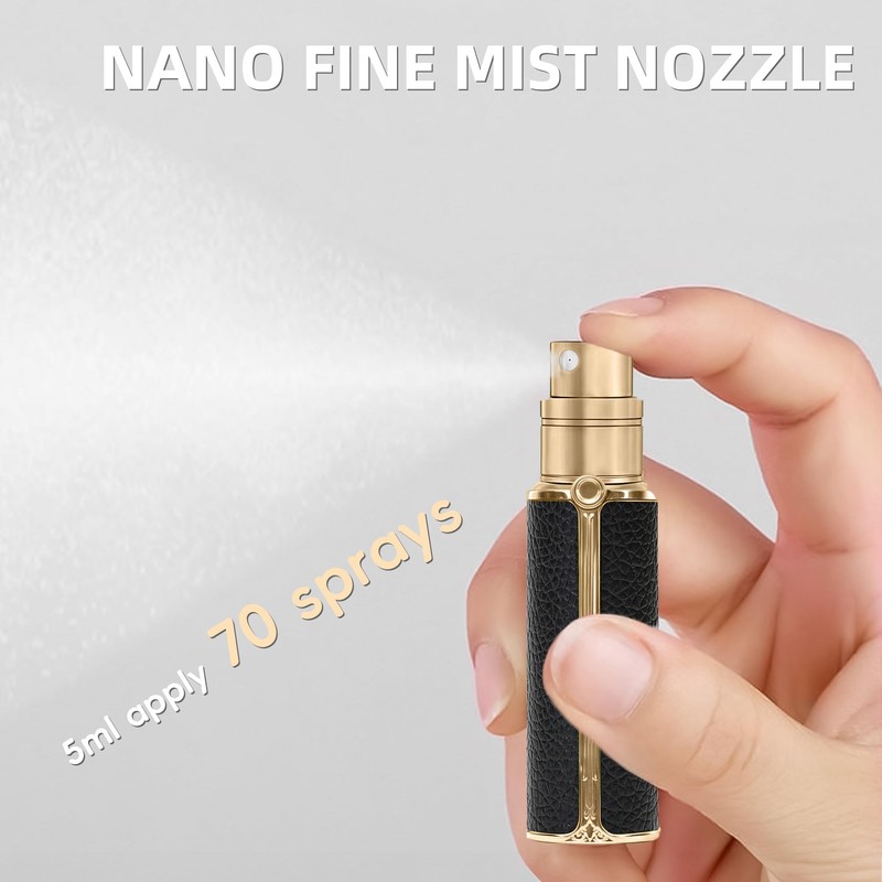 • FINE MIST MAXIMIZED FRAGRANCE: The 0.2mm ultra-fine mist nozzle disperses perfume evenly, ensuring every drop is used efficiently. With up to 70 sprays per 5ml fill, it extends the life of your favorite fragrance while reducing waste—perfect for making luxury perfumes last longer.