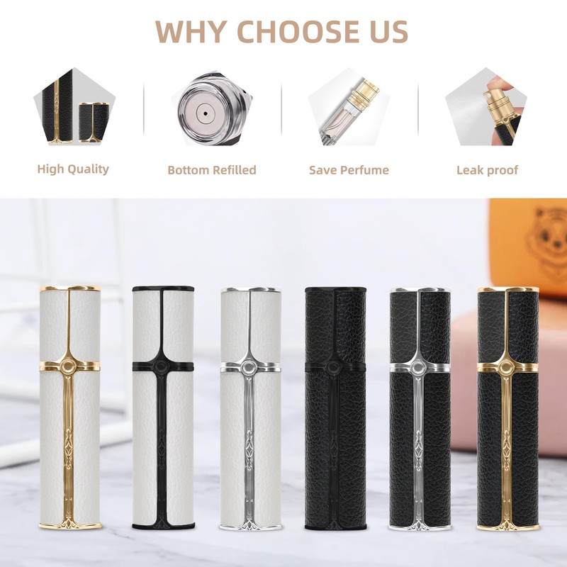 Elevate your fragrance game with our 10ml leather perfume bottle, combining luxury, functionality, and portability. Crafted from premium leather, it features a bottom-fill design for mess-free refills and a leak-proof seal for safe carrying. Compact and lipstick-sized (0.98” x 3.84”), it’s perfect for travel, gym, or daily use. The 0.2mm fine mist nozzle saves fragrance with up to 70 sprays per fill. A versatile and thoughtful gift for men, women, and all ages, suitable for birthdays, holidays, or special occasions. Durable and user-friendly, its shatterproof transparent liner and rugged leather exterior ensure long-lasting use.