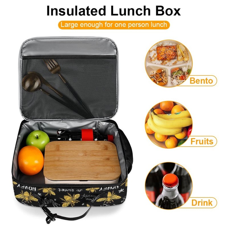 Muishi Honey Bees Reusable Lunch Box Insulated Lunch Bag Cooler Bag Lunchbox Meal Food Container Tote Bag for Women Kids Girls Boy School Camping Hiking Picnic Beach Travel
