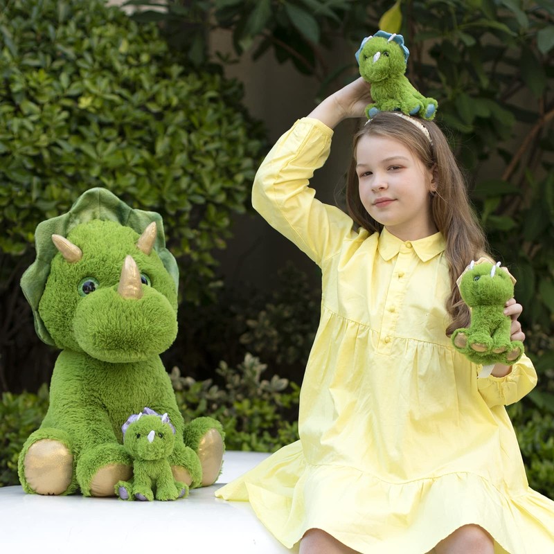 - 【Plush Triceratops Set】Adorable stuffed animal set with a mommy triceratops with 3 cute little babies zipped inside. Giant dinosaur plush toy is perfect for hugging and snuggling.