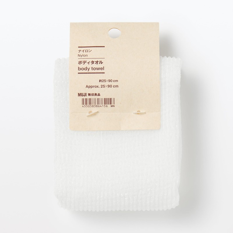 Muji 83864156 Nylon Body Towel, Approx. 9.8 x 35.4 inches (25 x 90 cm)