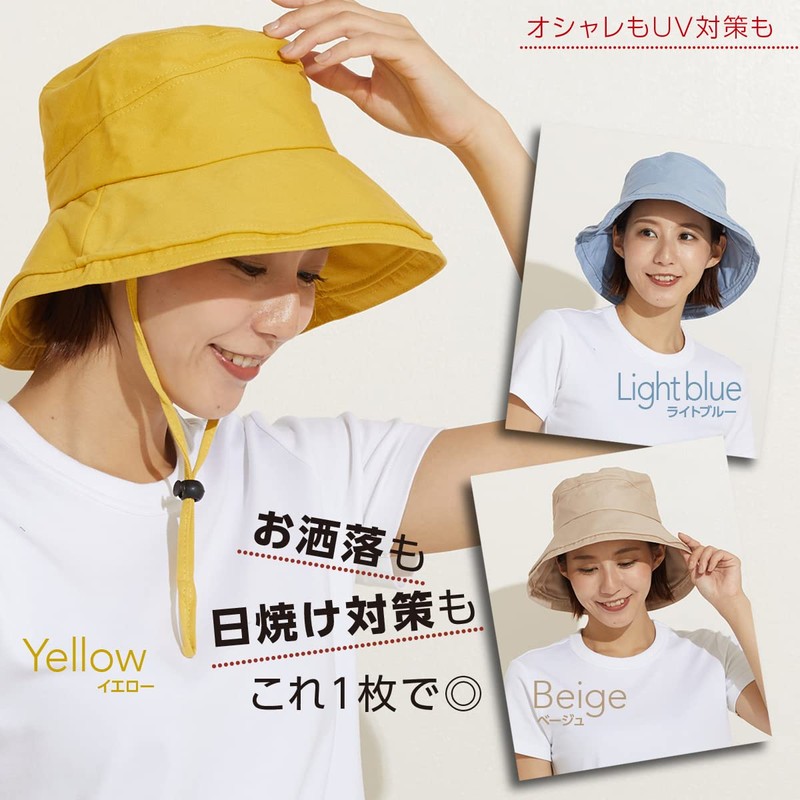 mujina Women's UV Protection Hat, Sun Protection, Wide Brim Hat, Small Face Effect, UV Protection, UV Protection, Foldable, String Included, Non-Flying, For Traveling, Commuting, Heatstroke