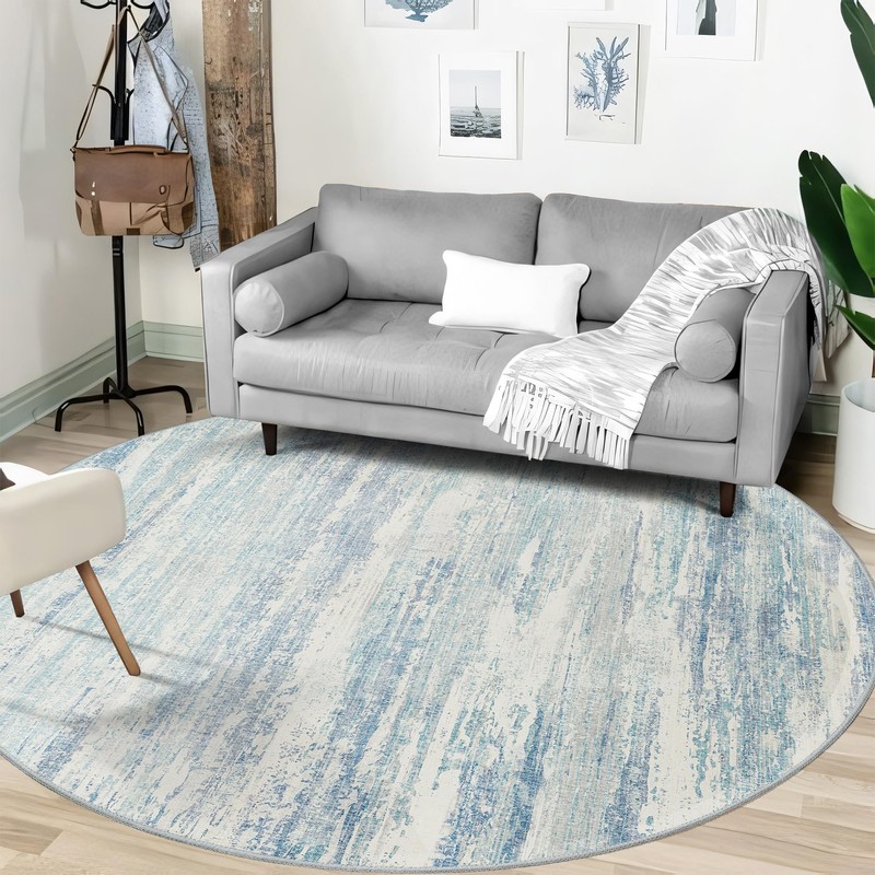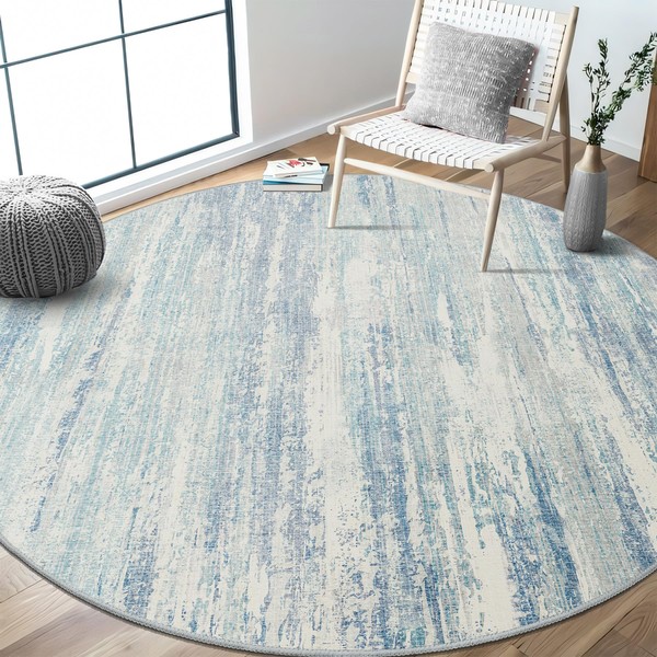 MUJOO Round Rugs 6ft,Circle Area Rug Washable,Circular Rugs for Living Room Dining Room,Large Modern Abstract Non Slip Throw Carpet Accent Neutral Blue