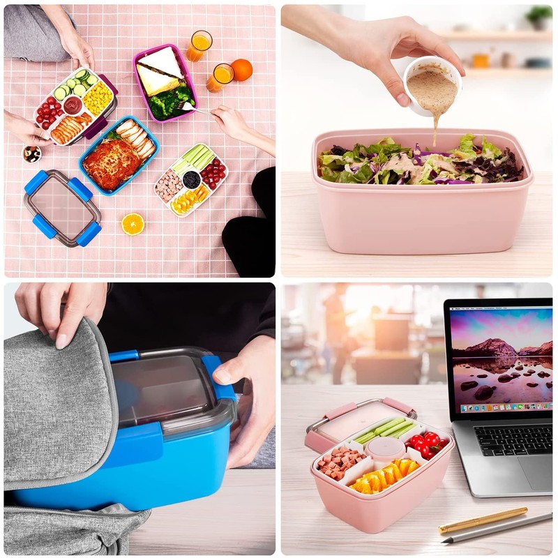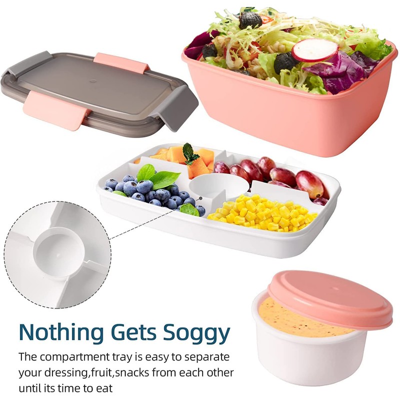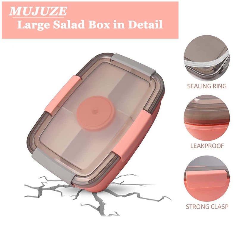 - 2-tier salad box large: MUJUZE lunch box with large capacity and compartments, 2-layer structure, easy to remove the inner box. Lunch boxes serve your main dish, fruit, snacks or sauces separately to keep food clean and odor free.