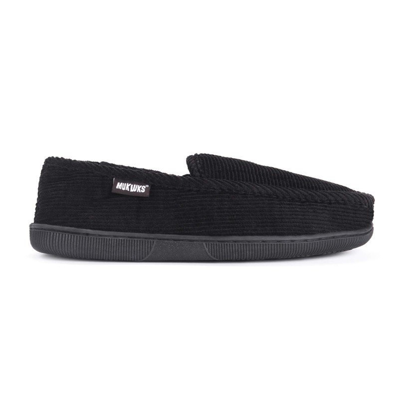 Muk Luks Men's Corduroy Moccasin with Flannel Lining, Black, Medium