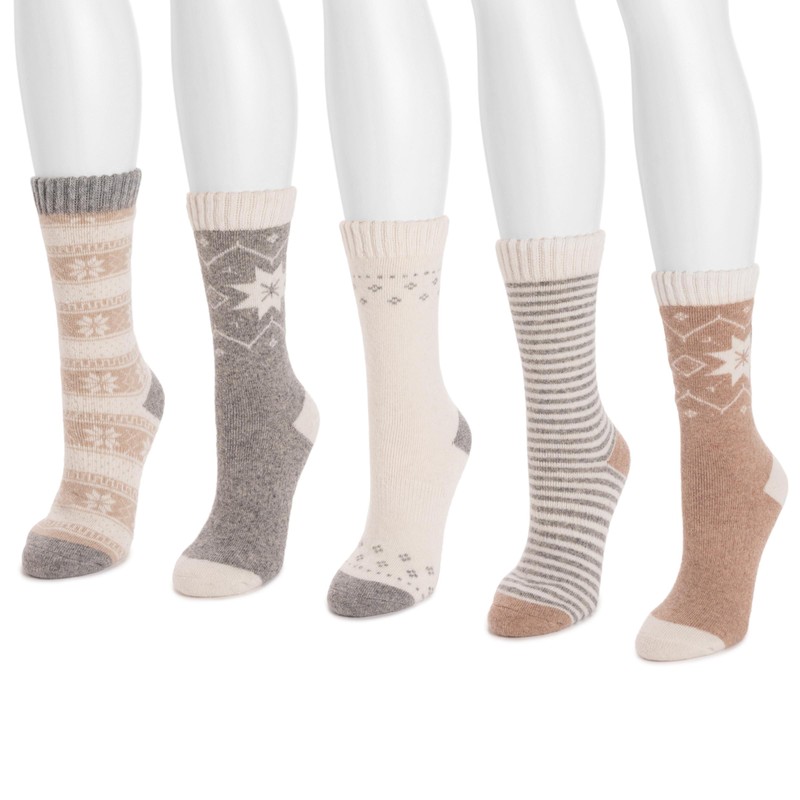MUK LUKS Women's 5 Pack Wool Socks, Lt Neutral, OS (6-11)