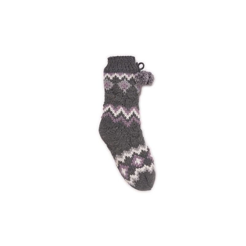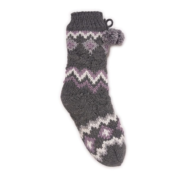 MUK LUKS Women's Chunky Fairisle/Cable Mix Cabin Socks, Grey, L/XL