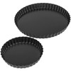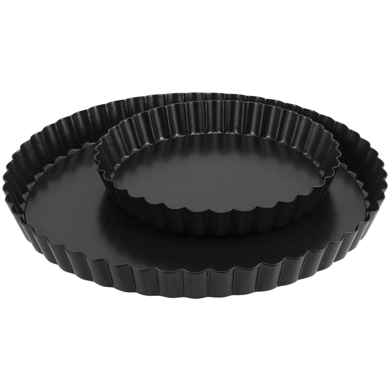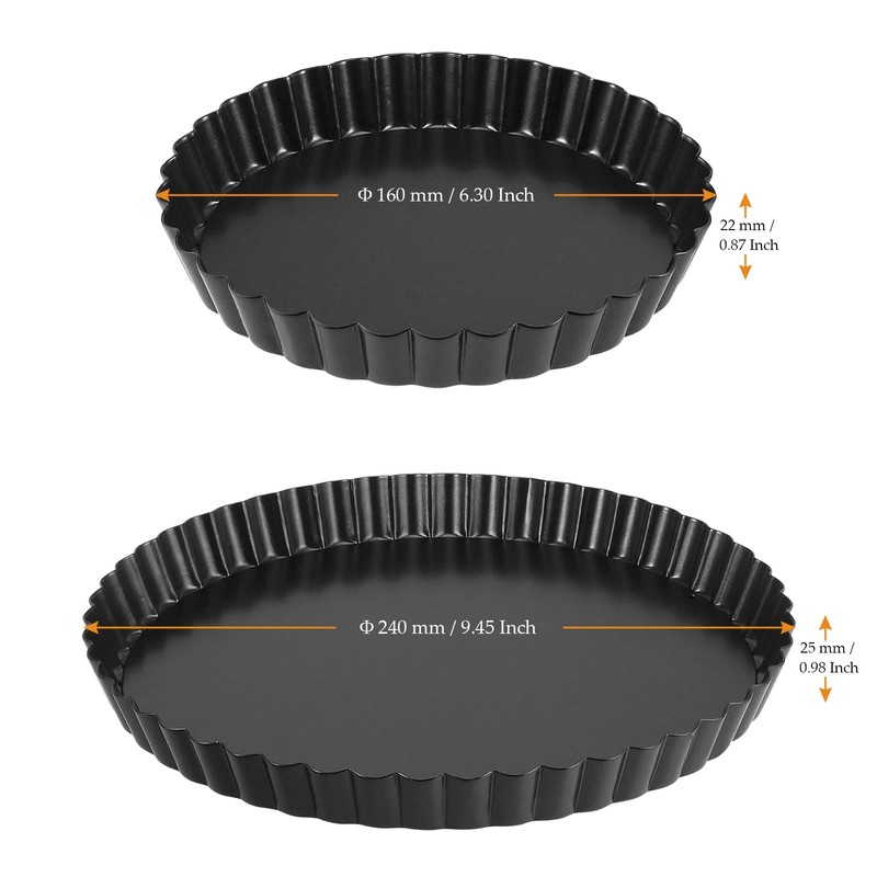 MUKCHAP 2 Pack 2 Sizes 6/9 Inch Non-Stick Tart Tin Set, Loose Bottomed Tart Tin Kit, Pie Dish with Removable Base, Flan Dish Fluted Round Quiche Pan for Baking, Kitchen, Black