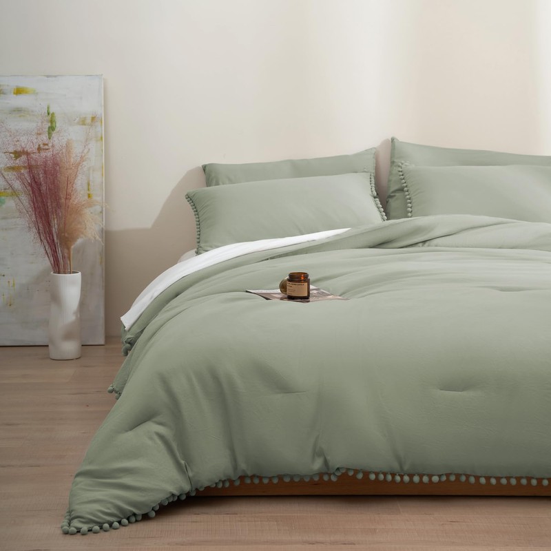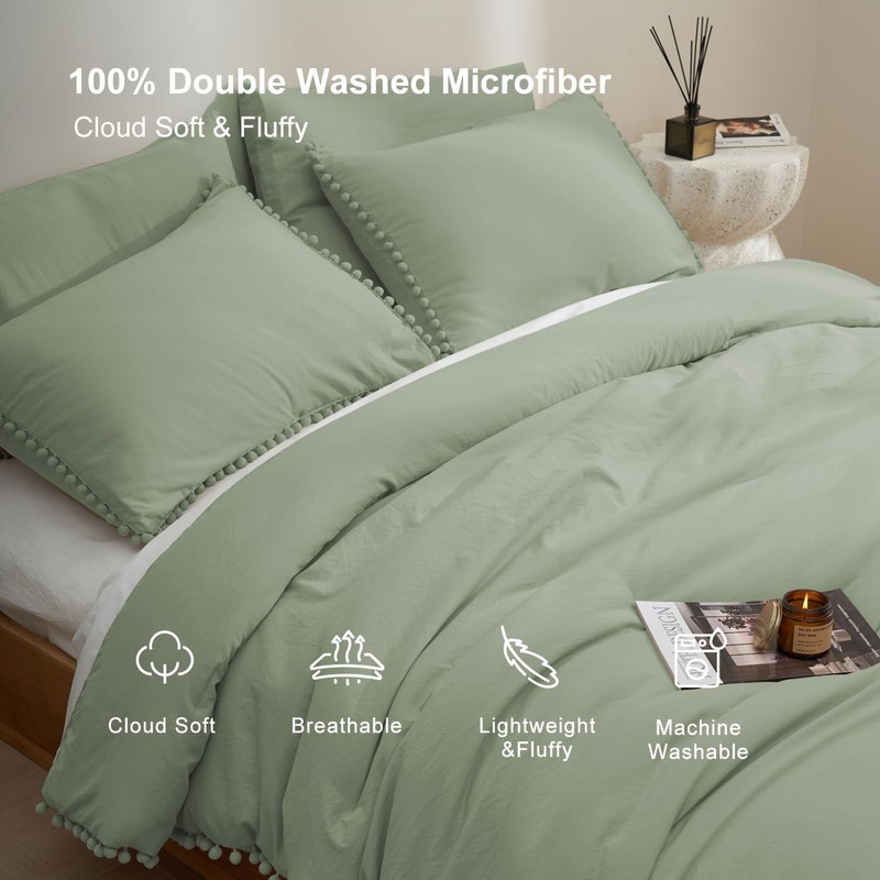 - Premium Quality: Crafted from high-quality 100% brushed microfiber materials, our full size comforter set ensures both durability and comfort. The soft fabric provides a cozy haven for restful sleep, while the pom pom detailing adds a playful and chic aesthetic.