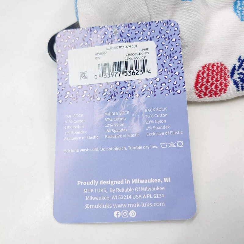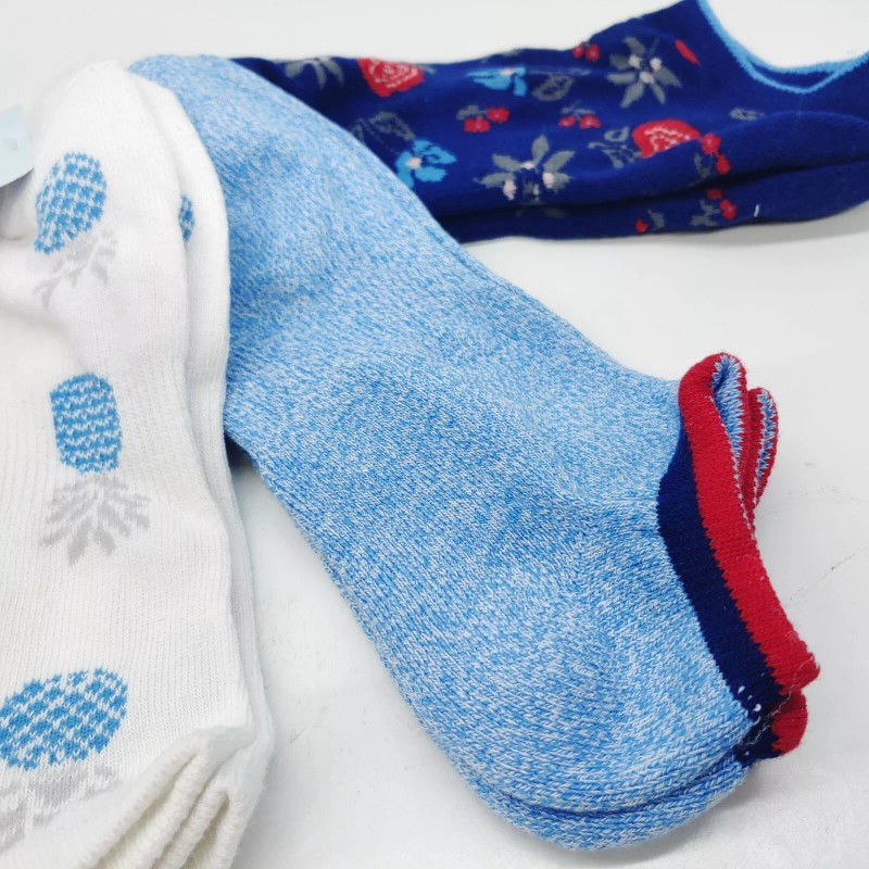 Mukluks Muk Luks Womens Cushioned Ankle Socks 3 Pair Size 6-11 Pineapple Flowers Blue