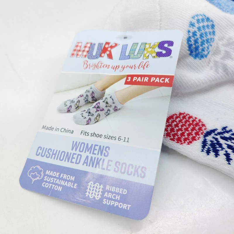 Mukluks Muk Luks Womens Cushioned Ankle Socks 3 Pair Size 6-11 Pineapple Flow...