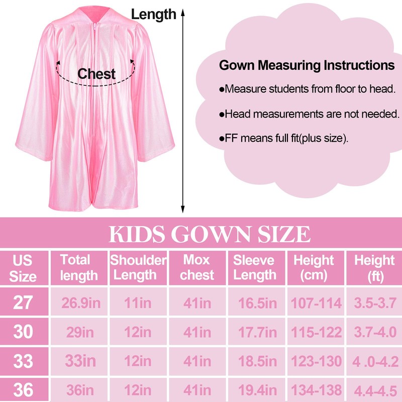- SIZE DETAIL - Unisex gown 4 sizes loose fit for height 3.5ft-4.5ft children, the other graduations accessories are the same size suit for most kindergarten and elementary kids, please check the detail size on the shows before purchasing.
