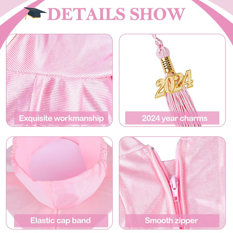- COMPLETE GRADUATION SET - A package come to you with 1 pcs pink kids graduation cap and gown, 1 pcs gradution tassel with 2024 charms, 1 pcs gold graduation sash, and 1pcs kindergarten certificate, complete graduation outfit set will make kids graduation ceremony more memorable.
