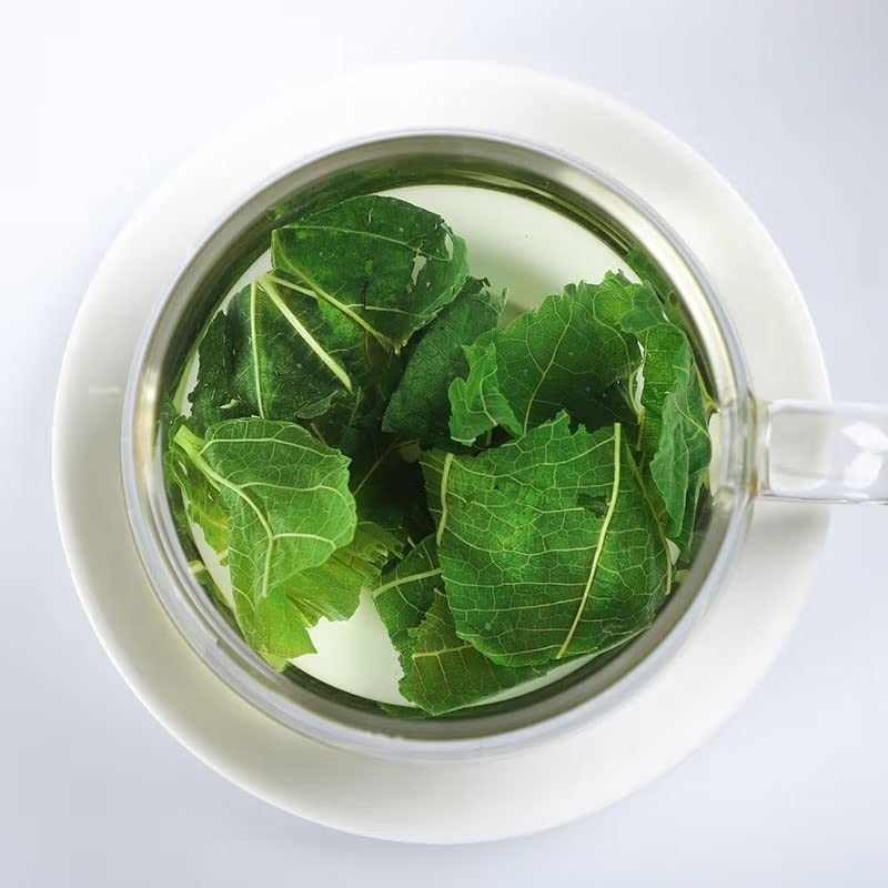 - Mulberry leaf tea is made by hand from tender mulberry leaves picked after frost in late autumn. It tastes mellow, fragrant, and has a green color. After being soaked in water, the soup is bright and the tea smell overflows. It can be brewed repeatedly