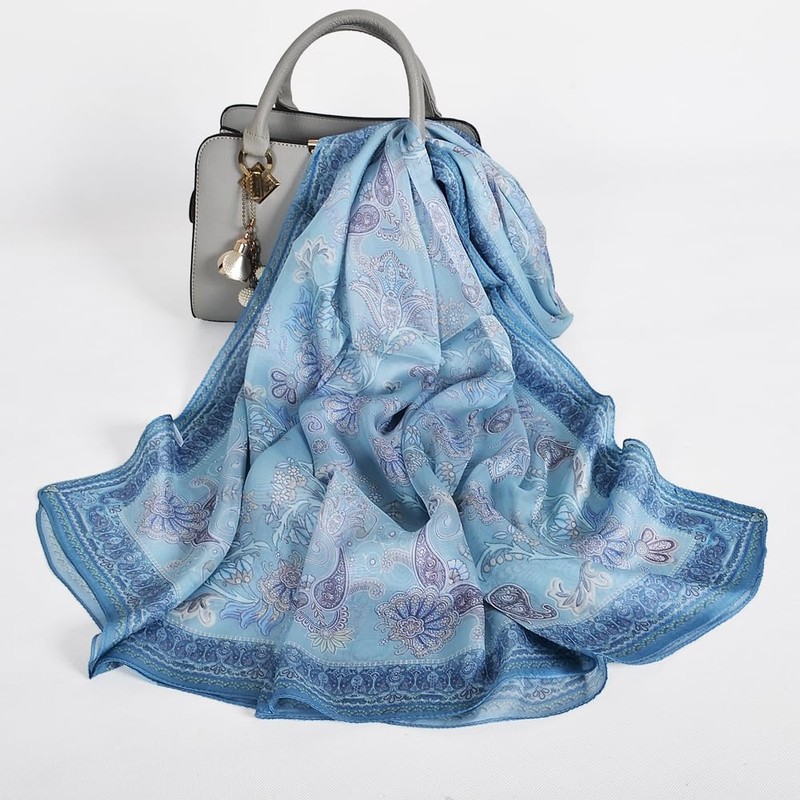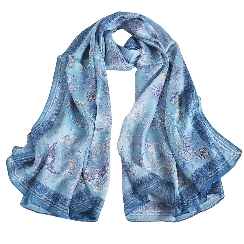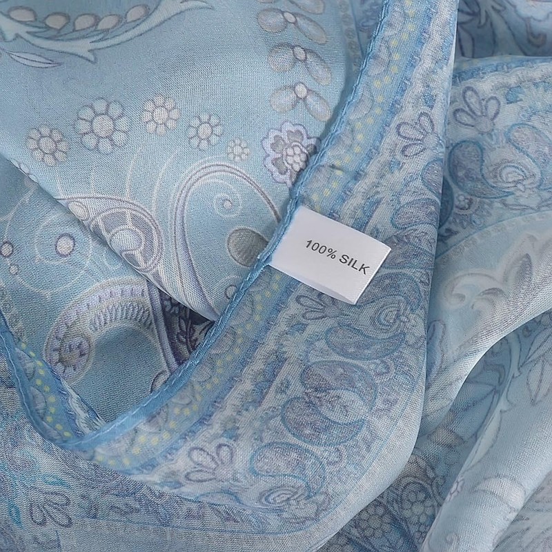 - Design: The paisley pattern on this silk scarf boasts unique elegance. Its swirling shapes are lively, with smooth and soft lines. The color layers are rich, with harmonious blue tones. It combines vintage charm and a modern - stylish feel, has deep cultural roots, suits various styles, and its exquisite details showcase quality and distinct aesthetics.