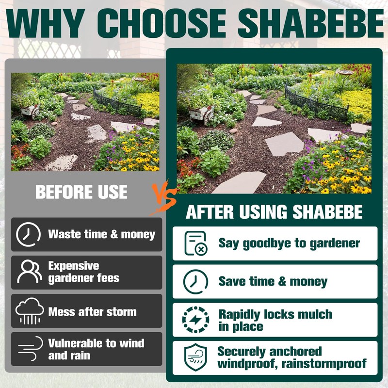 - 【ARE YOU FRUSTRATED TO MAINTAIN UNTIDY LANDSCAPES?】 Feel the Overgrown grass is hard to sweeping and waste time? Feel gardener fees is Expensive and waste money? Shabebe Mulch Glue can solve all of your problem. Garden enthusiasts' ultimate go-to product for achieving exceptional results. Keeps Your Landscape Beautiful All Year Round!