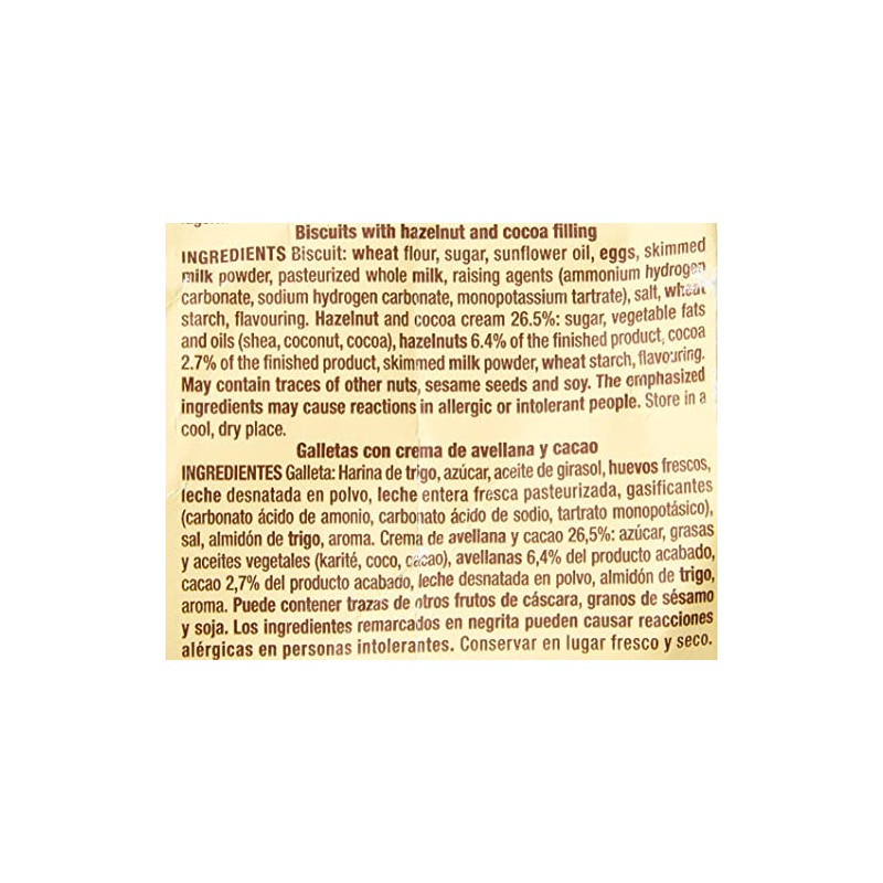 - Mulino Bianco: "Baiocchi" Cookies with cream hazelnut and cocoa