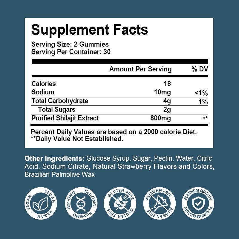 Mulittea Himalayan Shilajit Gummies Organic Shilajit Resin Energy Boost Stamina Support