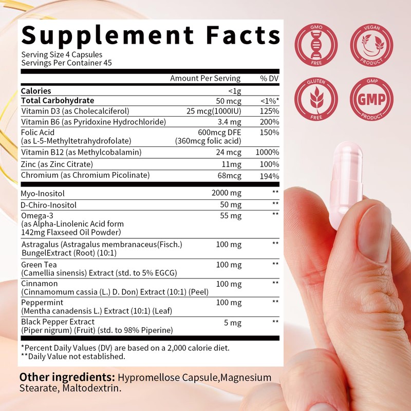 Mulittea Myo-Inositol & D-Chiro Inositol Supplement for Women-Hormonal Balance - Ideal 40:1 Ratio-Plus Omega-3-No Fillers, Gluten Free-120 Count-2 Pack