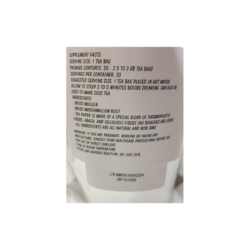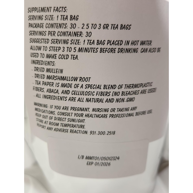 Mullein Leaf Marshmallow Root Blend Tea Bags - All Natural Wildcrafted (30)