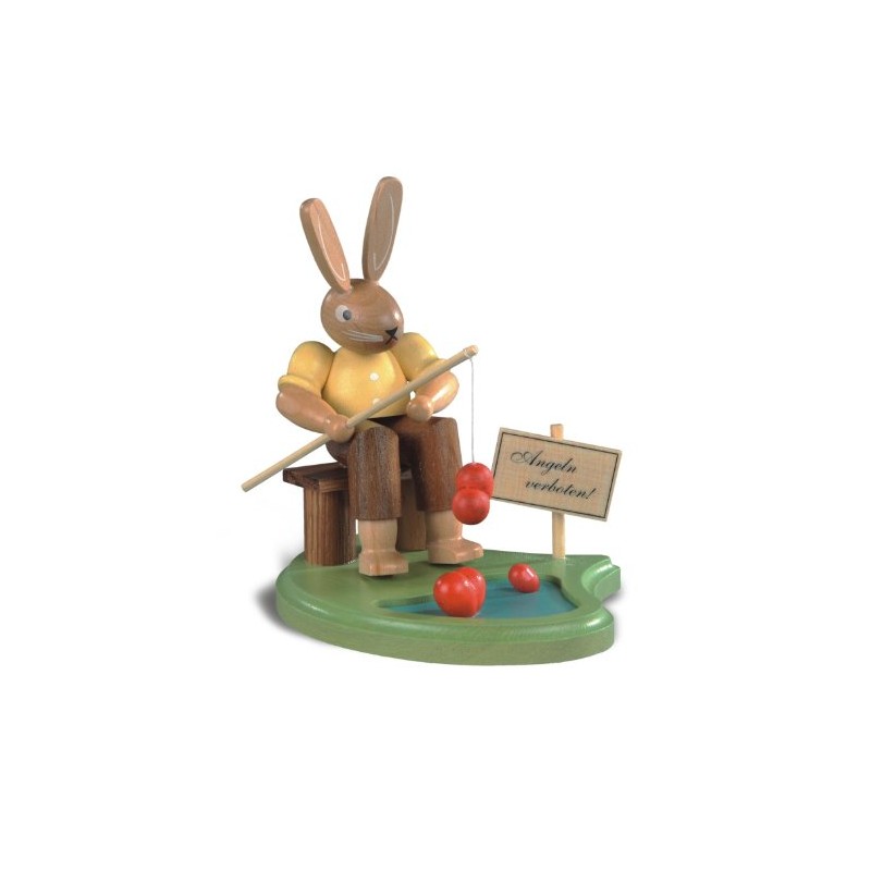 Müller Easter bunny, male, fisherman on pond, height 8 cm / 3 inch, coloured, original Erzgebirge by Mueller Seiffen