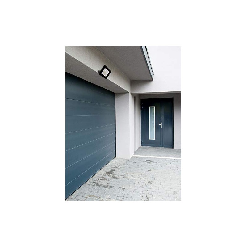 Müller-Licht John 30W Sensor LED Outdoor Spotlight with Motion and Twilight Sensor, Daylight White (6500K), IP65 Protected, 2100 Lumens, for Indoor and Outdoor Use, Direct Connection, Black