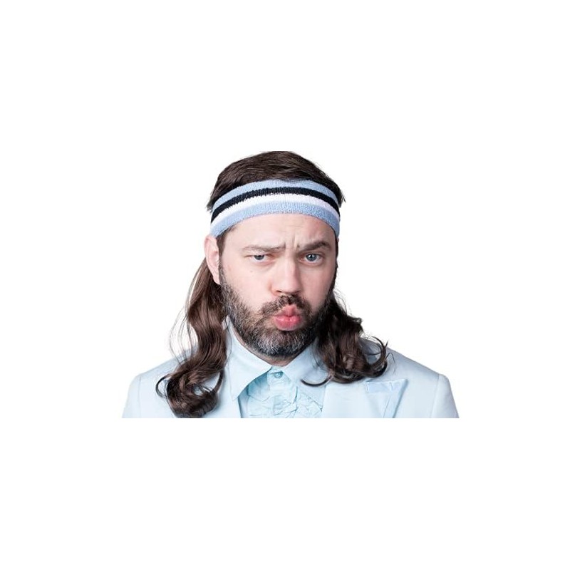 - 9 Inches of Wavy Fun: Get ready to rock the party with the Blue Steel Mullet Headband Wig! With 9 inches of wavy, brown locks and a super cool dark blue, white, and light blue headband, you’re all set to steal the spotlight.