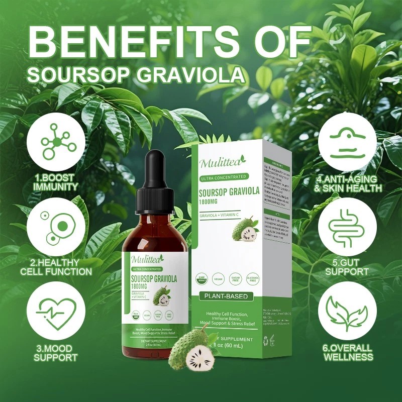 Mullitea Soursop Graviola Extract Drops Plus Vitamin C Immune Support & Antioxidant