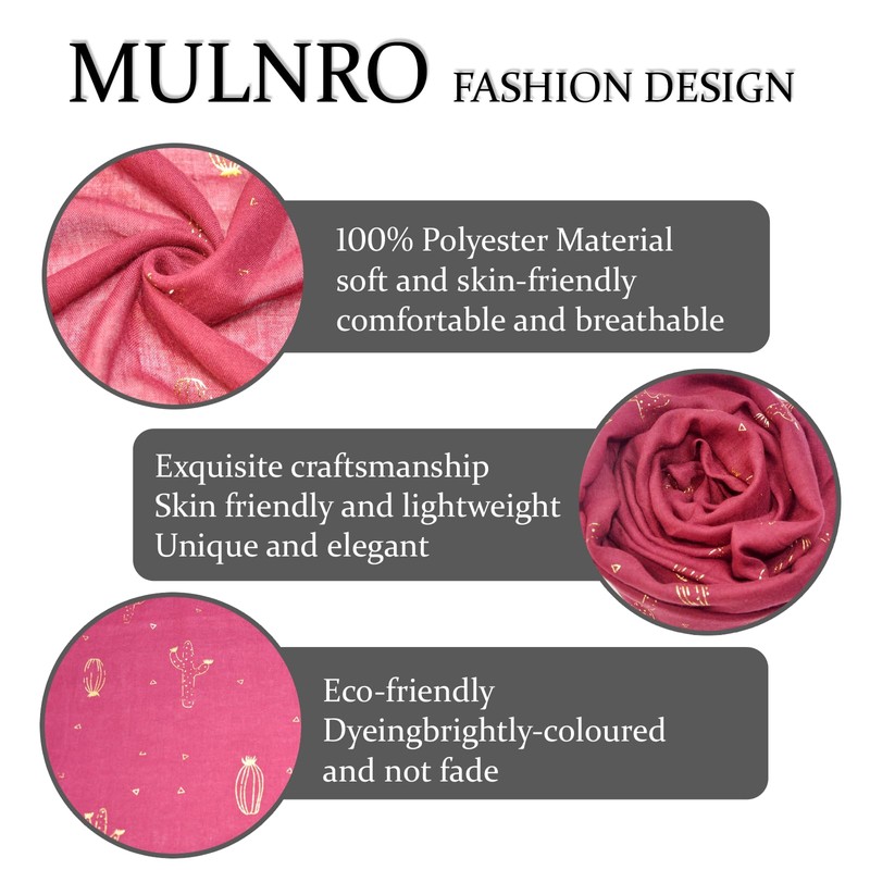MULNRO boho floral scarf for women - lightweight chiffon shawl with print, stylish cotton scarf, plus size spring accessory (cr-C02)