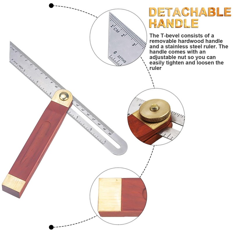 High-quality materials: T bevel bevel measuring angle is made of durable stainless steel and is equipped with a traditional handle made of polished hardwood. It does not hurt hands easily. which is not easy to rust, fall and damage resistant and deformation resistant and can be used for a long time.
