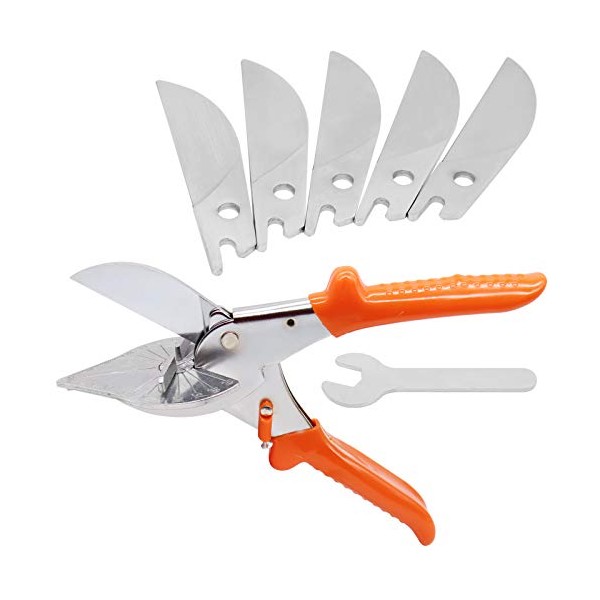 Multi Angle Miter Shear Cutter Hand Tools,45-135 Degree Adjustable Angle Scissors Trim Shears Tools with 5 Replacement Blades and Spanner