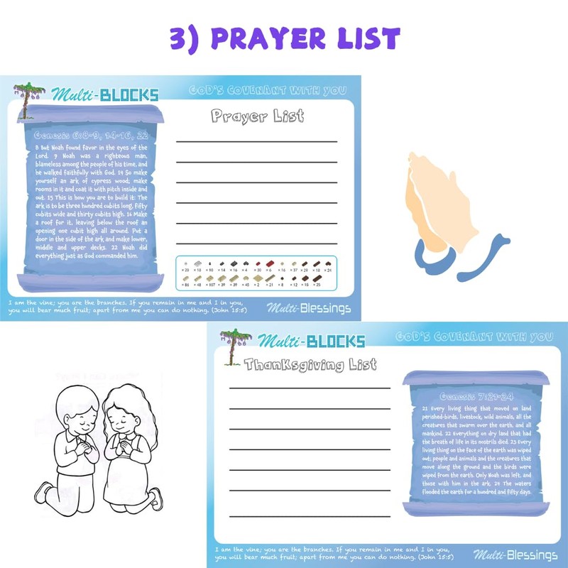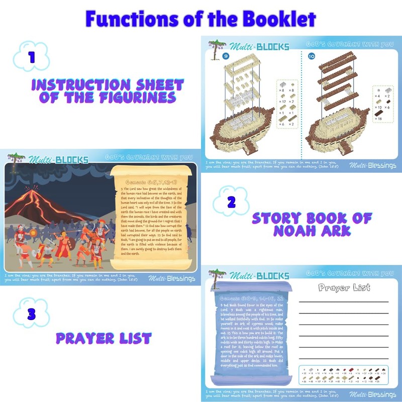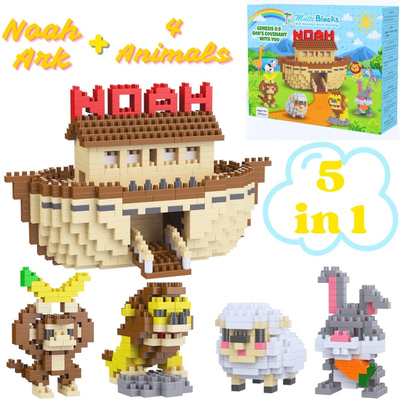 Multi-Blocks - Noah Ark & 4 Animals Mini Blocks Figurine, Bible Story, Collectable Building Set for Aged 14+, Great Gift for Teens and Adults (1207Pcs/14.8x7.2x9.1cm)