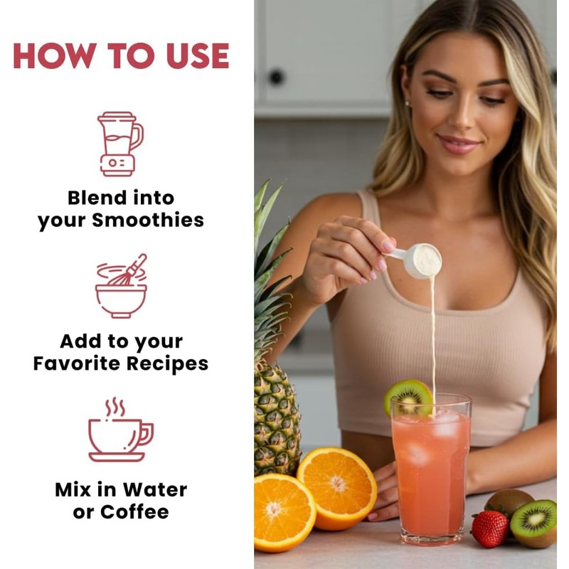 - How to Use: Just add 2 scoops to water, smoothie, protein shake or coffee; collagen Peptides is easily digested and dissolves easily in hot and cold liquids; Non-GMO, grass-fed, and cage free, made without hormones or chemicals, gluten and grain free. Use it daily to boost your beauty from the inside out and support skin, hair, nails and joint health